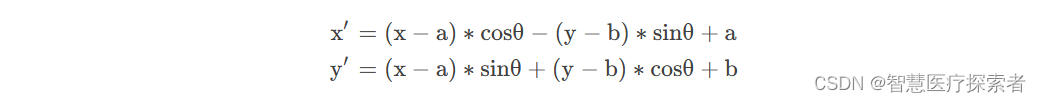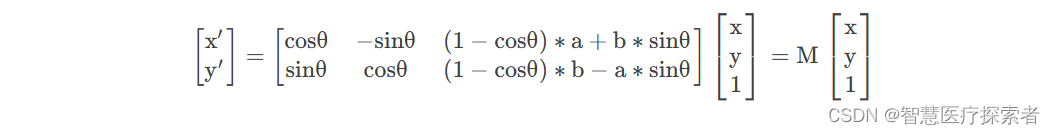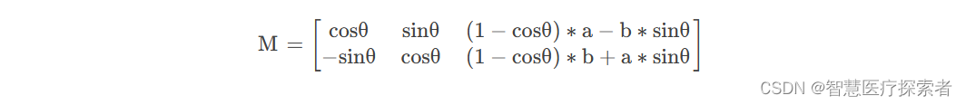 上式中的c(a,b)表示旋转中心,因为坐标系问题需要对θ进行取反,最终M矩阵的表达式如下