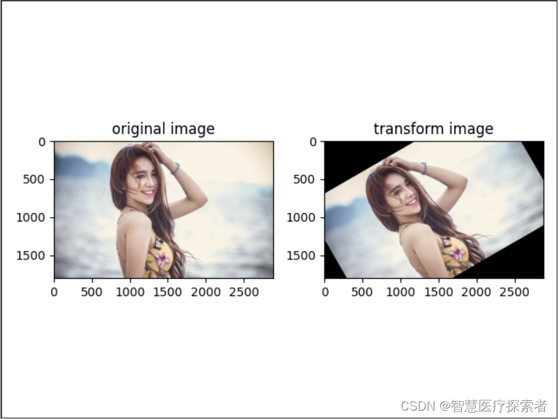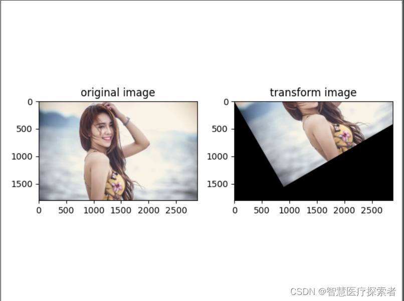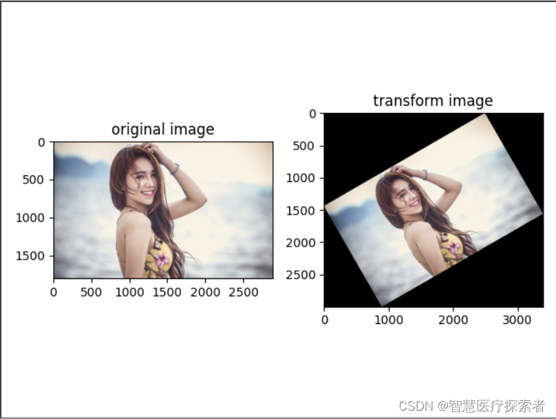 围绕图像中心旋转后的图片部分被裁剪掉了,如果我们想让旋转之后的图片仍然是完整,代码如下: