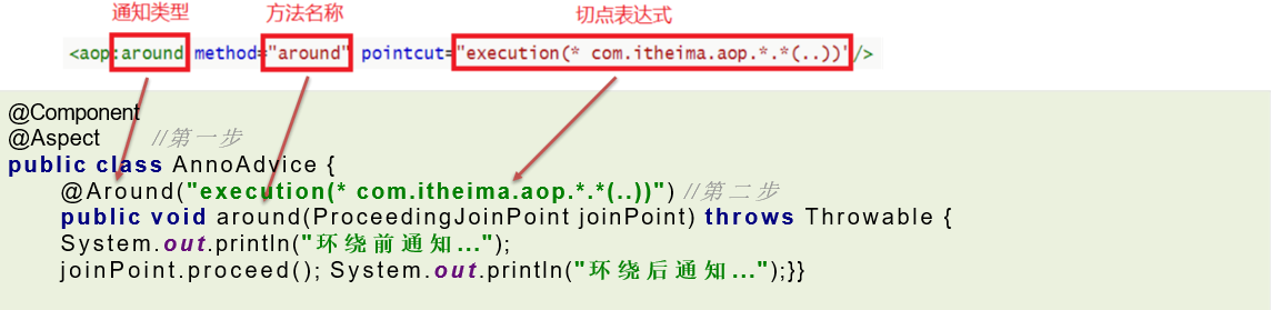 ● 通知类:Spring提供的,通知方法已经定义好,只需要配置即可