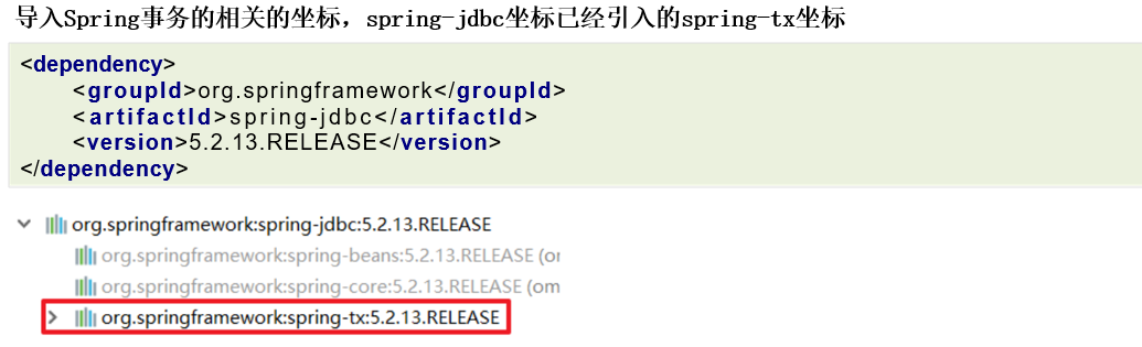 ● 通知类是Spring提供的,需要导入Spring事务的相关的坐标;