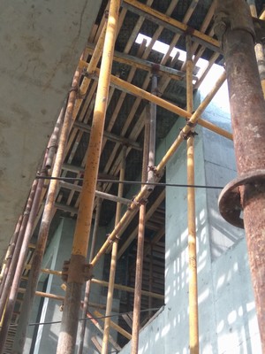 B、支撑架立杆间距过大