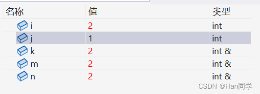 - 定义变量 i 初始化为0,定义 k 为 i 的引用,变量 j 被赋值为 i 的值。