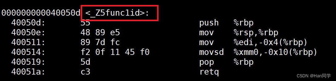 在linux下,采用g++编译完成后,函数名字的修饰发生改变,编译器将函数参数类型信息添加到修改后的名字中,我们也可以发现它的修饰规则为_Z+函数名长度+函数名+参数类型首字母。