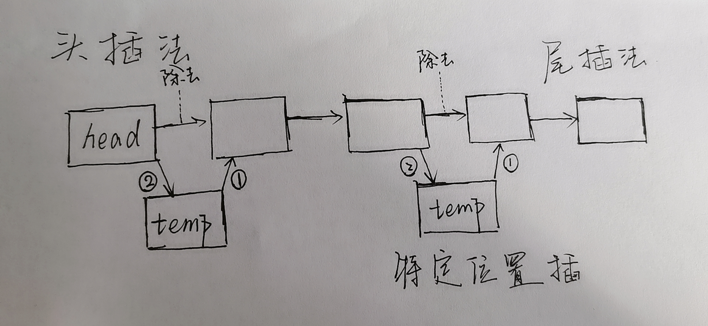 temp->next = head->next;//改变next指针的指向,先进行这一步,防止数据丢失