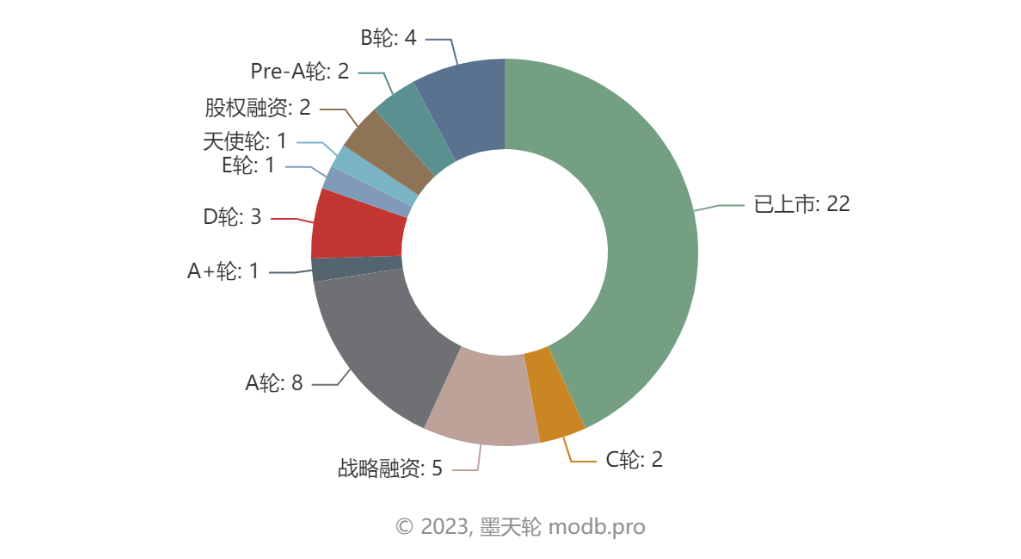 在所有参与排名的数据库相关厂商中,已经上市的发布数据库产品的厂商有22家,其次,A轮融资的有8家。大型企业纷纷开始涉足数据库赛道,数据库产品也更加多样。具体数据如下图所示: