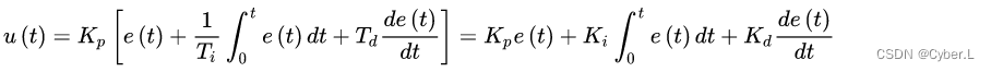 u(t) = Kp * e(t) (比例环节) + Ki * ∫ e(t) dt (积分环节) + de(t)/dt (微分环节)