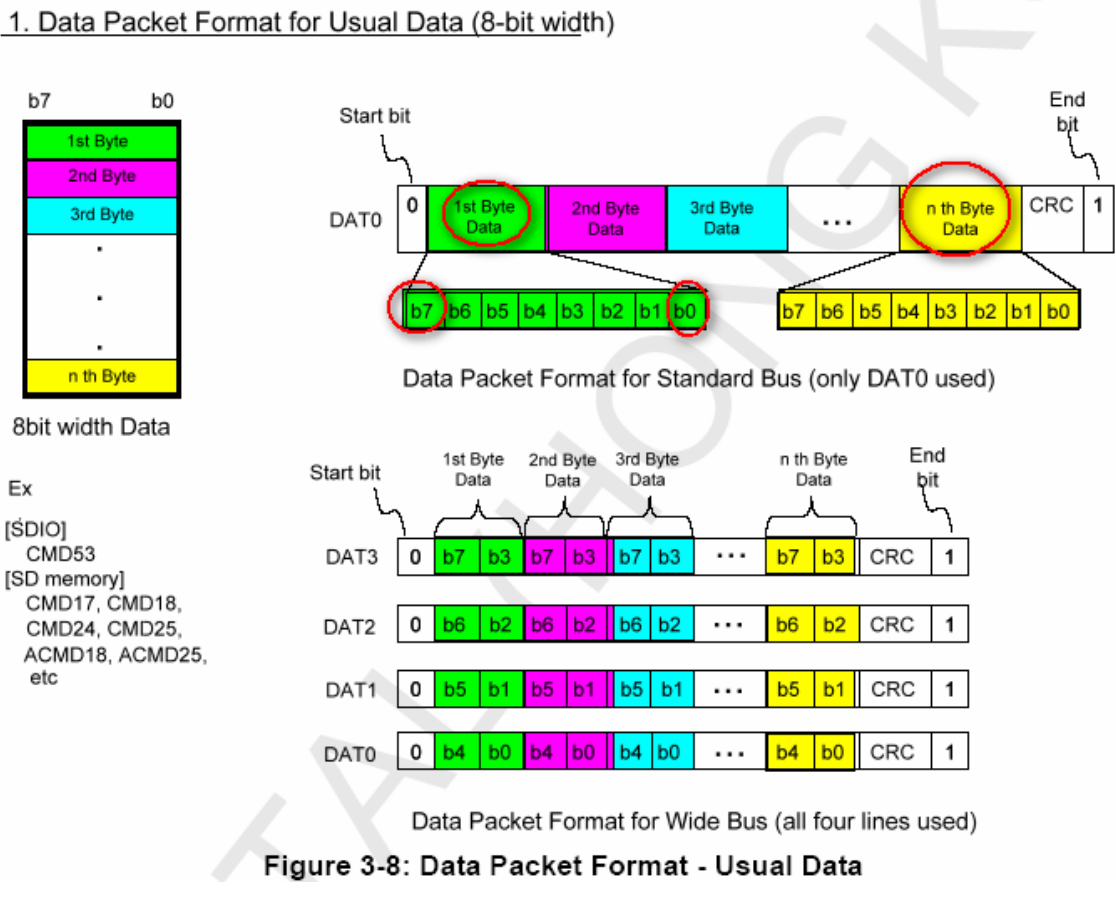 SD 总线是基于命令和数据流,它们由一个开始 Bit 发起,由一个停止 Bit 结束。