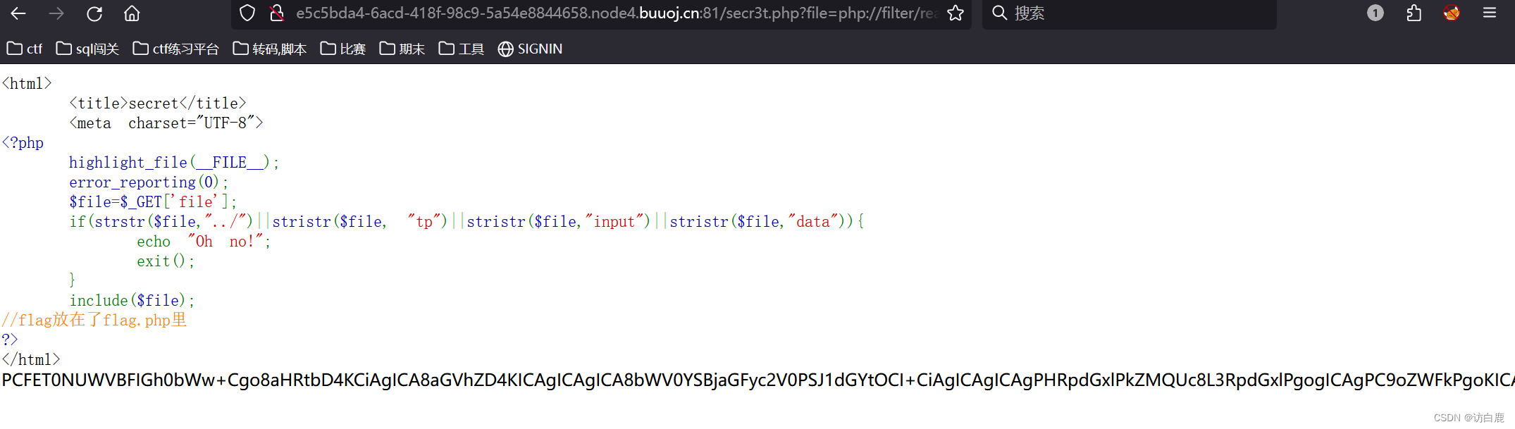 那我们便用php://filter读取flag.php文件内容