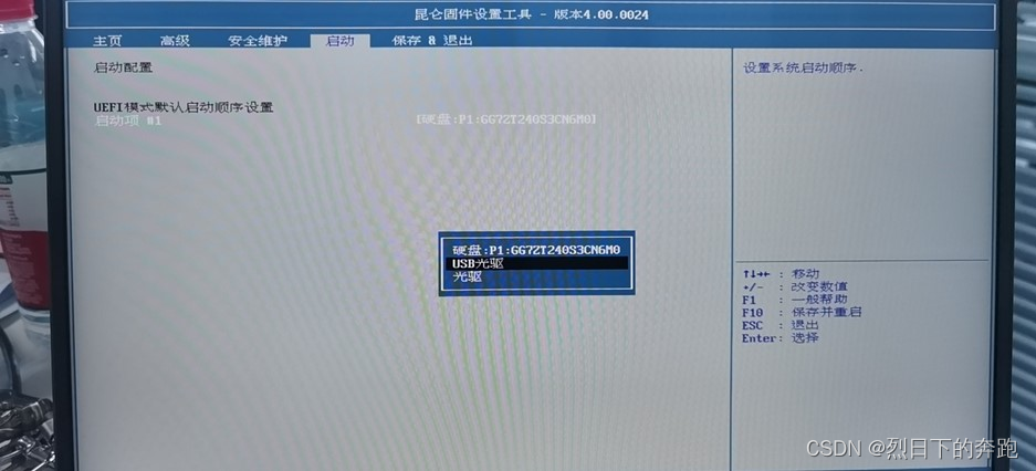 第一步:开机---secadm 登录---F1 进入 bios---依次选择:安全管理→安全维护 →启动项管理开启/关闭,重启。如图