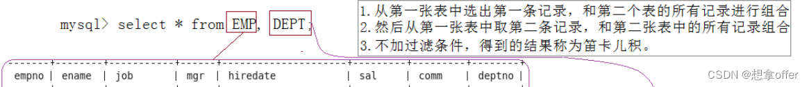 通俗来讲就是两个表的每一列都组合一遍,也就是穷举法。
