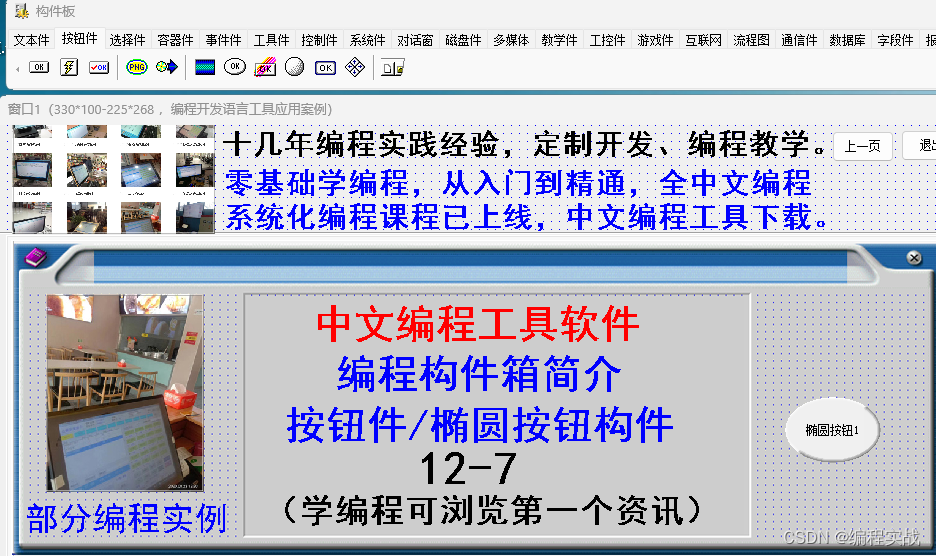 今天给大家介绍的是椭圆按钮构件,在按钮件 构件板中,按钮件 构件有12个,这个构件处于第7位。