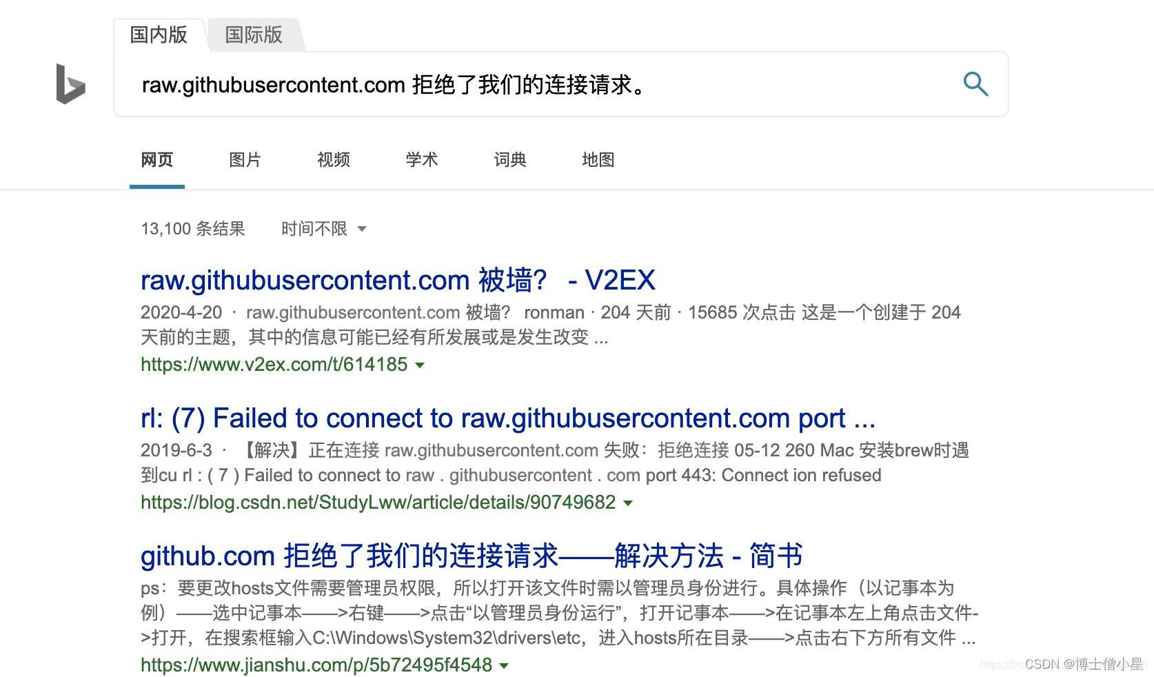 解决方法很简单,查找raw.githubusercontent.com的ip,并将其添加至系统hosts文件即可: