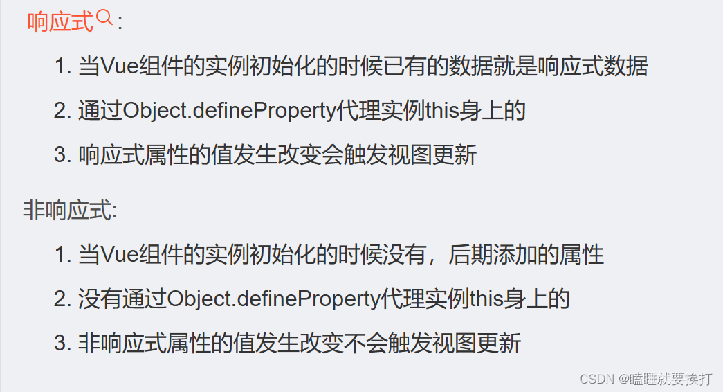 同时去搜索了一下vue里面响应式和非响应式的数据有什么区别: