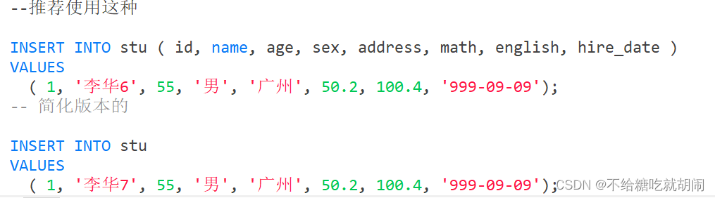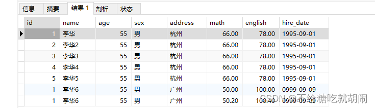 -- 注意:如果update语句没有加where 表里对应行的全部信息都会被改;