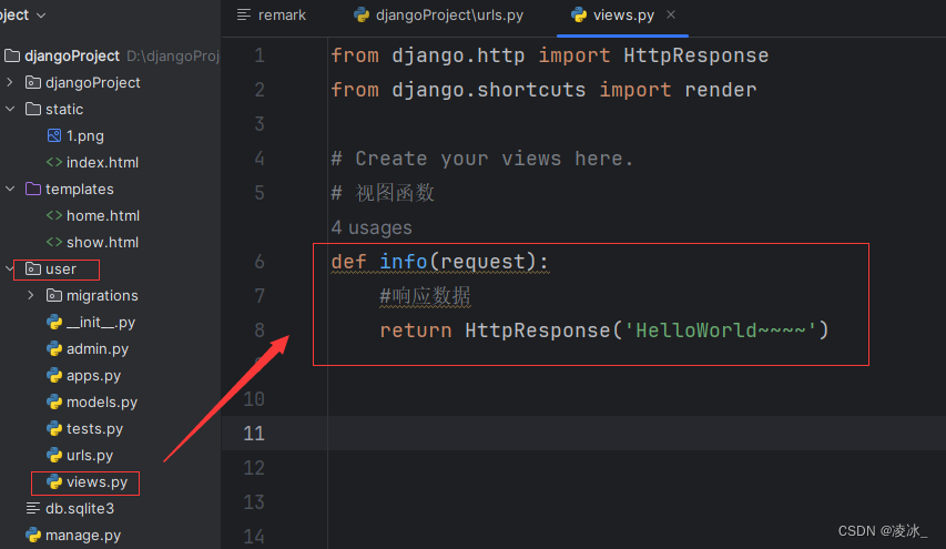 2.在视图veiws.py文件编写视图函数