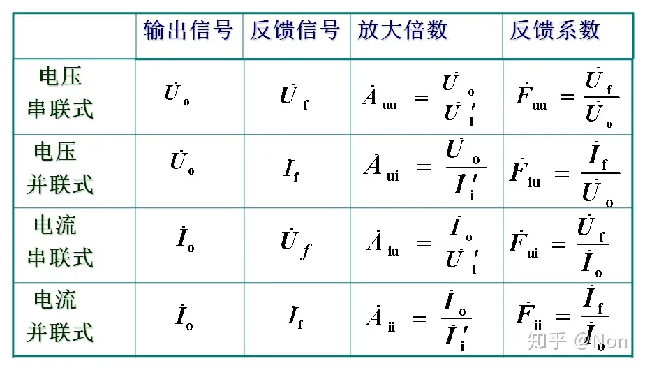 - 电压串联负反馈、电压并联负反馈、电流串联负反馈、电流并联负反馈