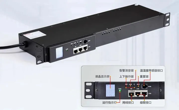 (2)分控+分检测设计,全面记录机柜内部IT设备所使用的电流、电压、电能、功率、因数等电力参数及湿度、门磁、红外、水浸等环境参数,降低了人力巡检的成本,做到风险早知道、故障早排除,提高设备的运维效率。