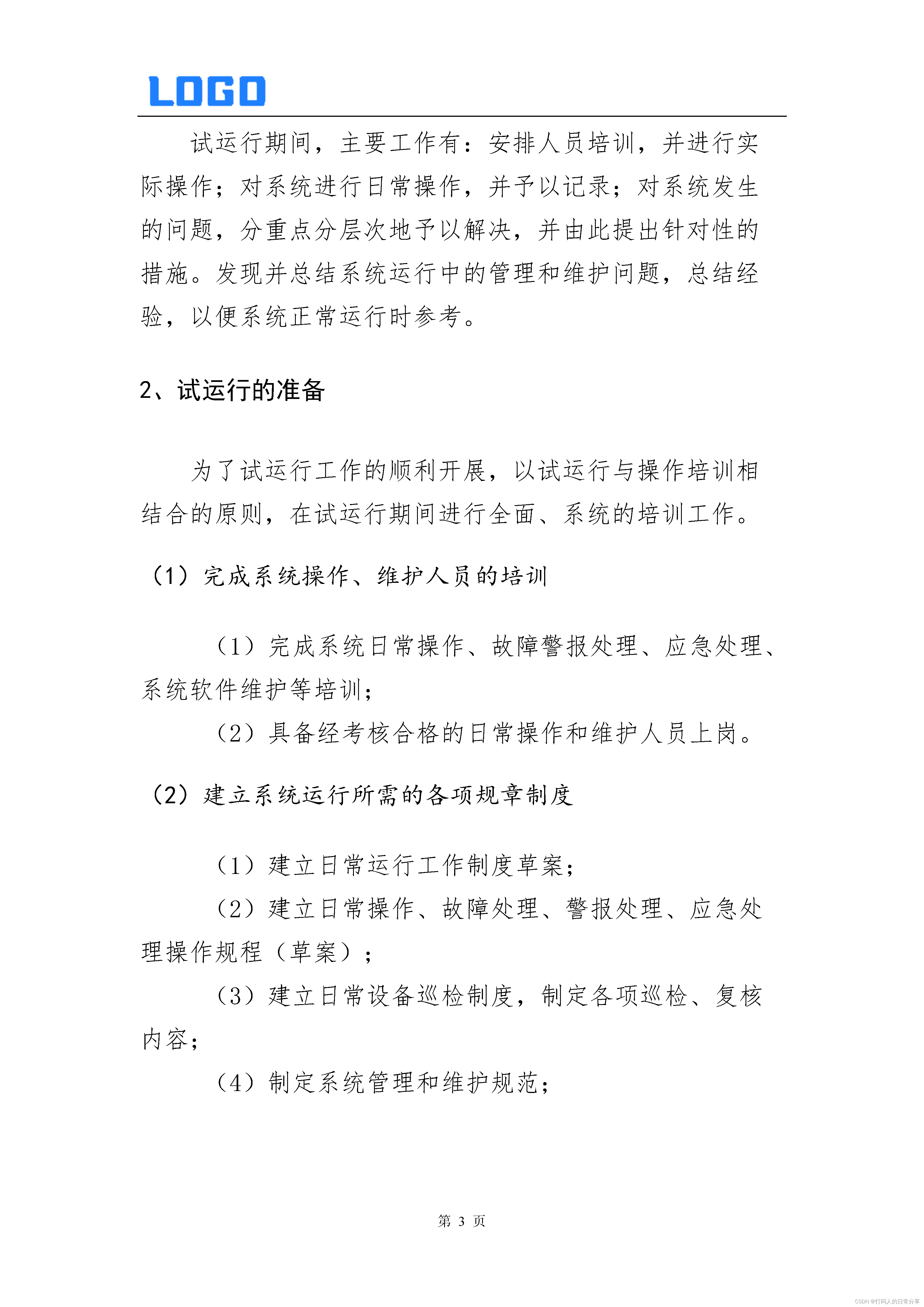 试运行目的通过既定时间段的试运行,全面考察项目建设成果。并通过试运行发现项目存在的问题,从而进一步完善项目建设内容,确保项目顺利通过竣工验收并平稳地移交给运行管理单位。通过实际运行中系统功能与性能的全面考核,来检验系统在长期运行中的整体稳定性和可靠性。