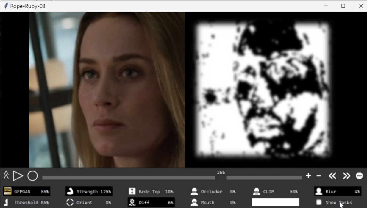 但其实默认的替换效果并不尽如人意,Rope-Ruby支持对脸型和效果滤镜进行微调,这也是Rope-Ruby最大的特色之一。