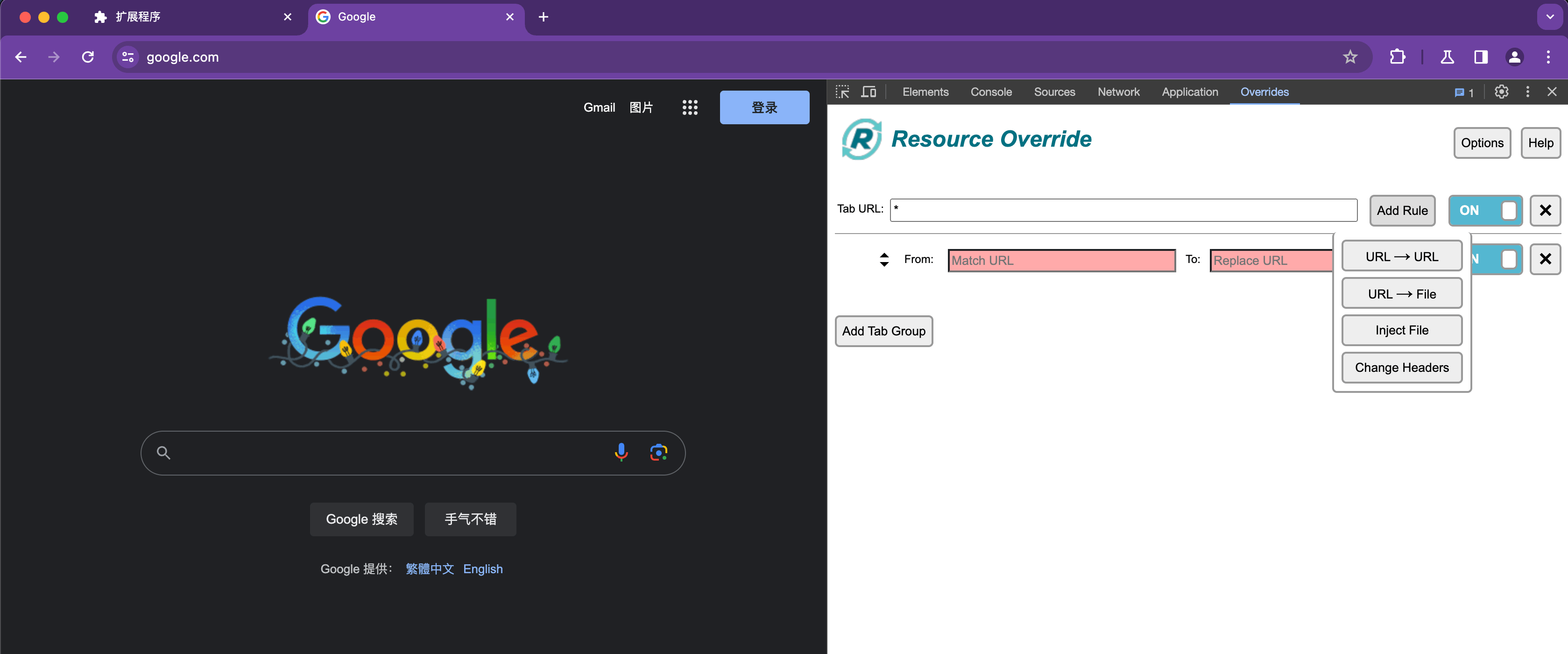 Resource Override 提供了实时修改,重定向和调试网页静态资源的能力。