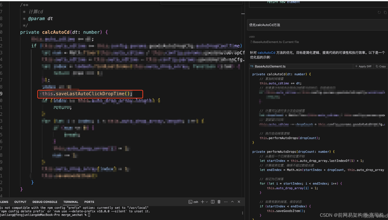 chat框就会给你提出优化建议,和优化的核心逻辑,对于圈复杂度较高的代码逻辑,他能给你一个较好的优化建议。