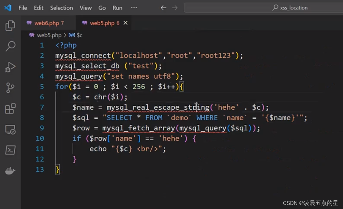 前面这个我们说过,看for就行,它在进行0-256的循环,然后转成chr(),之后跟hehe进行连接,比如Ã,之后demo查询的时候就会以heheÃ查,但特殊字段拼接mysql忽略,因此还是正常传