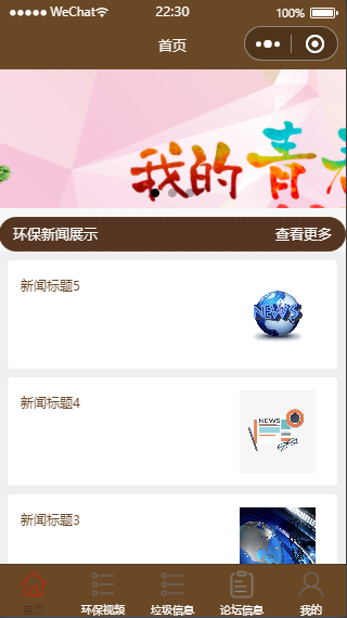 如图5.9显示的就是环保视频页面,用户可以在环保视频界面查看环保视频信息。