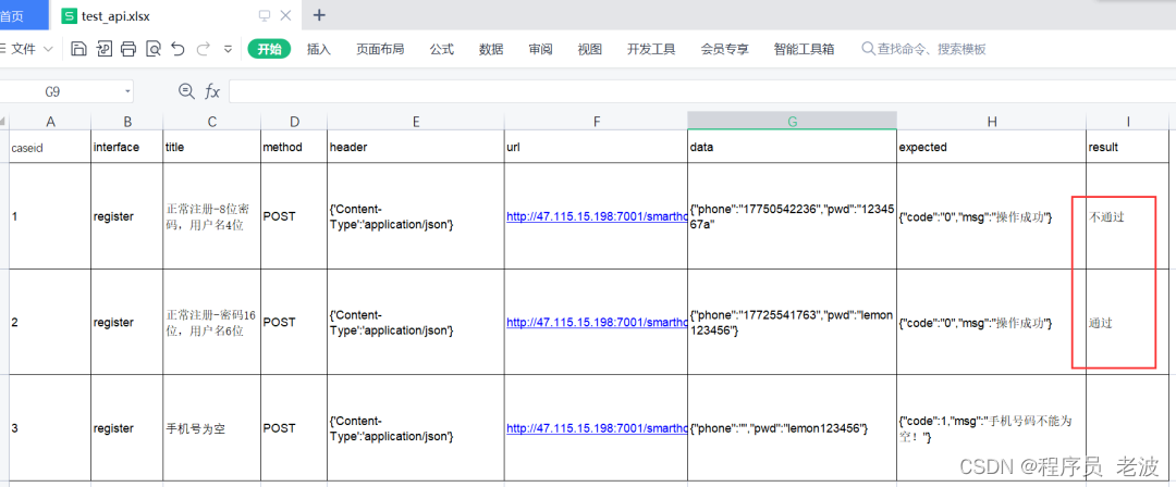 1.需求:对已存在的test_api.xlsx文件写入接口测试结果,如下图所示