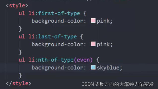 区别:nth-child会把所有的孩子排列序号;而nth-of-type会把指定元素的盒子排列序号