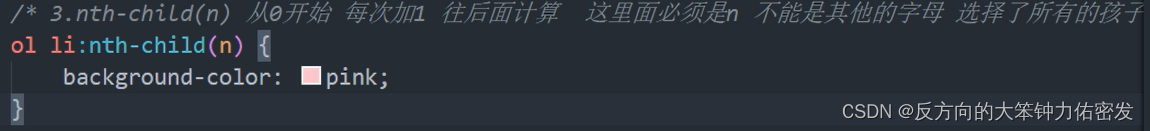 2° n如果是数字,就是选择第n个子元素,里面数字从一开始.....