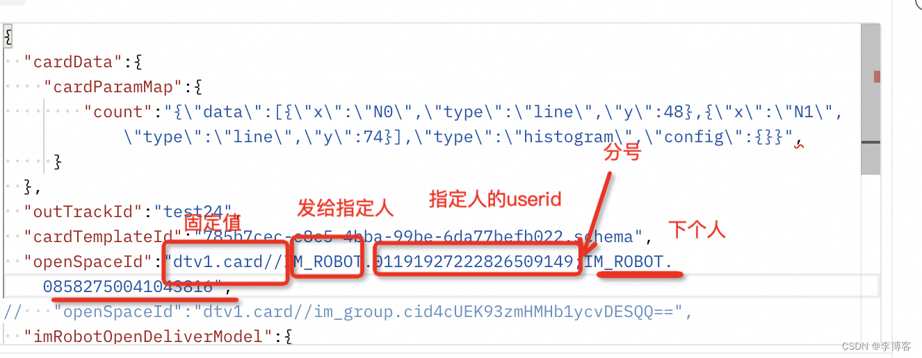 - public static void sendDingcard(String receiveUserId, String outTrackId, Map<String, String> cardDataCardParamMap, String cardTemplateId, String Key) throws Exception {