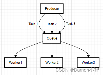 工作消息队列(Work Queue)用于在多个工作者(消费者)之间分发任务。生产者将任务发送到队列,多个工作者可以并发地处理这些任务。这种模型有效地实现了任务的分发和并行处理。