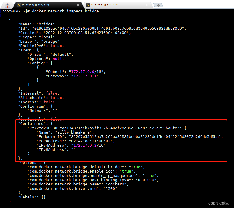 同一个宿主机上的所有容器会在同一个网段下,相互之间是可以通信的注1:bridge为默认模式,不需要使用参数--net去指定,使用了--net参数反而无效