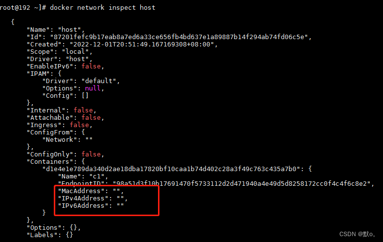 - docker network inspect host