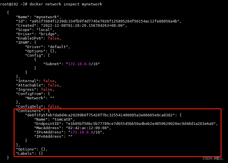 docker network inspect mynetwork