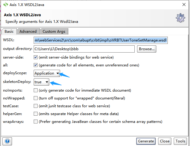 Tools – Axis 1.x Artifacts,选择对应的参数
