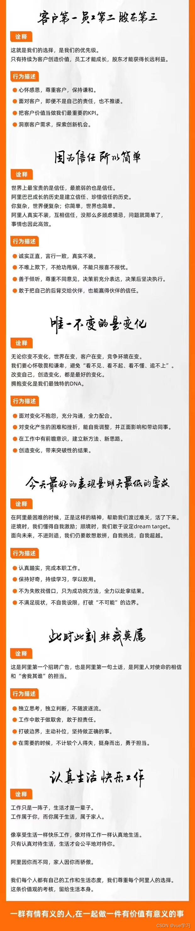 你看,阿里巴巴的价值观可不是装饰品。这套价值观,是实实在在落实在业务执行里的。业务干好了,但是价值观不过关,照样要走人。