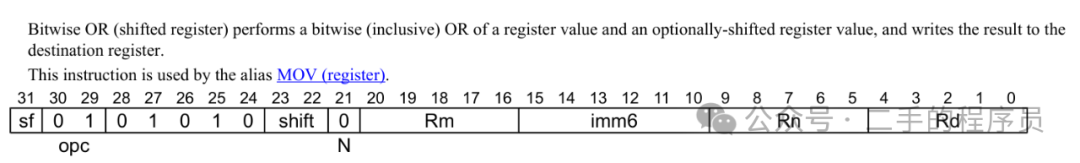 MOV 有个别名指令,ORR,它可以用到 shift,imm6,Rn的值。