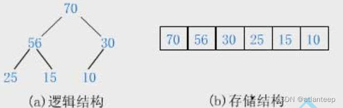 顺序存储只适合用于完全二叉树,因为如果不是的话会造成空间的浪费,而事实上,只有堆才使用顺序存储的方式。二叉树顺序存储在物理上是一个数组,在逻辑上是一颗二叉树
