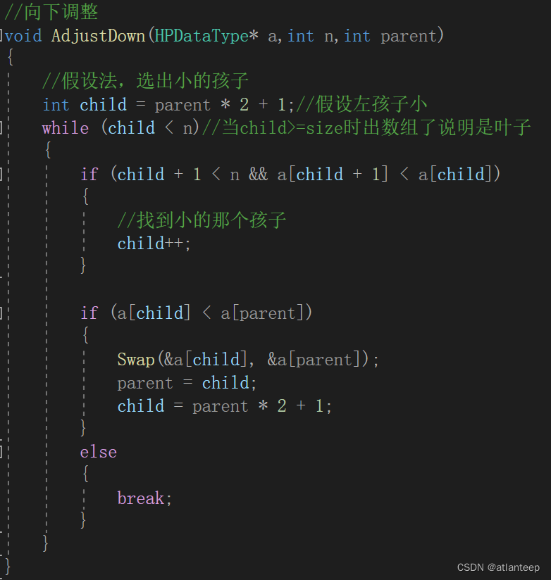 - void AdjustDown(HPDataType* a,int n,int parent)