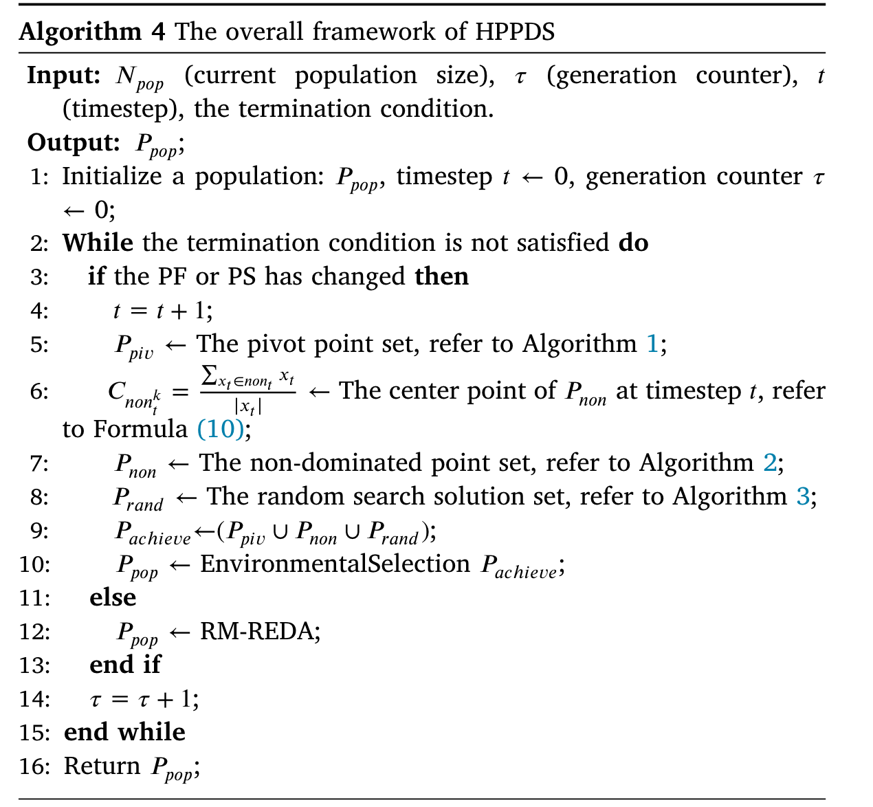 这里介绍了基础和DMOEA框架,在静态时使用RM-MEDA算法进行优化