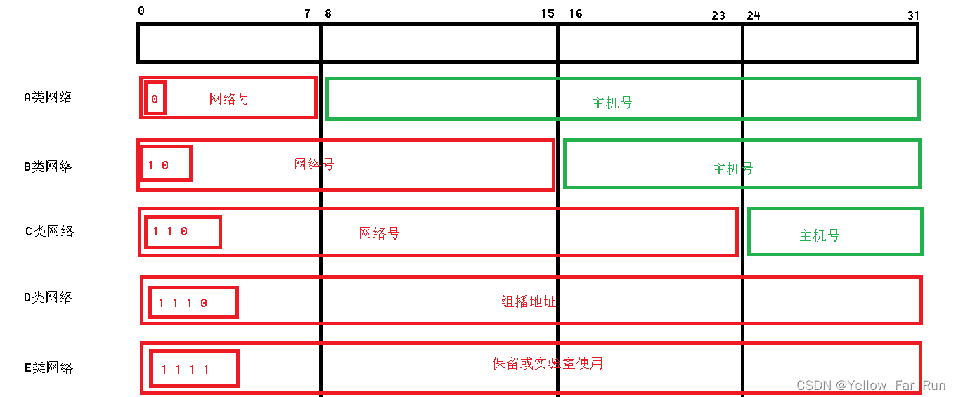 | E类地址 | 240.0.0.0~255.255.255.255 | 保留 |