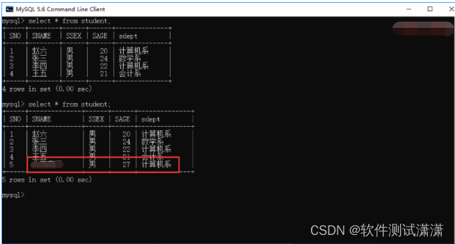 2、JMeter执行后,将“赵六”变更成“赵丽”,我们分别查看MySQL和JMeter的结果,如下图所示: