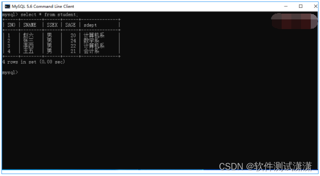 1、首先查询MySQL数据,只有四个人员,如下图所示: