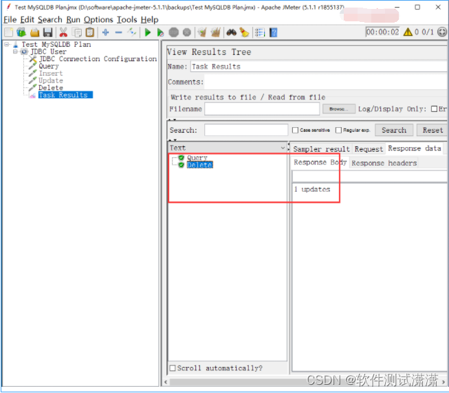保存与执行测试计划,查看任务结果,如下图所示: