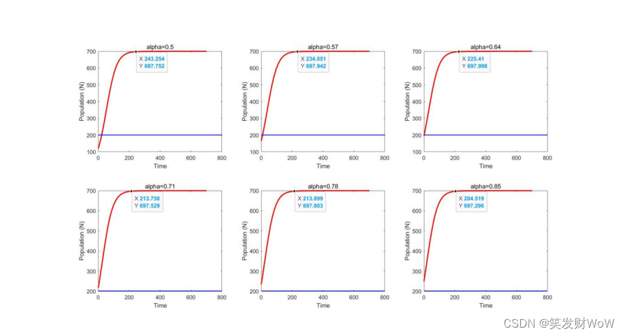 - plot(t, N, 'g', 'LineWidth', 2,'Color','r'); % 种群总数N(t)