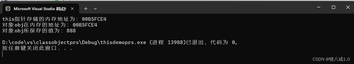 - cout << "this指针存储的内存地址为:" << this << endl;