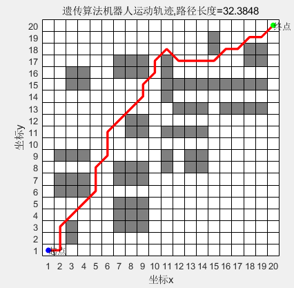 遗传算法(GA)求解基于栅格地图的机器人最优路径规划,可以自行修改地图(MATLAB代码)