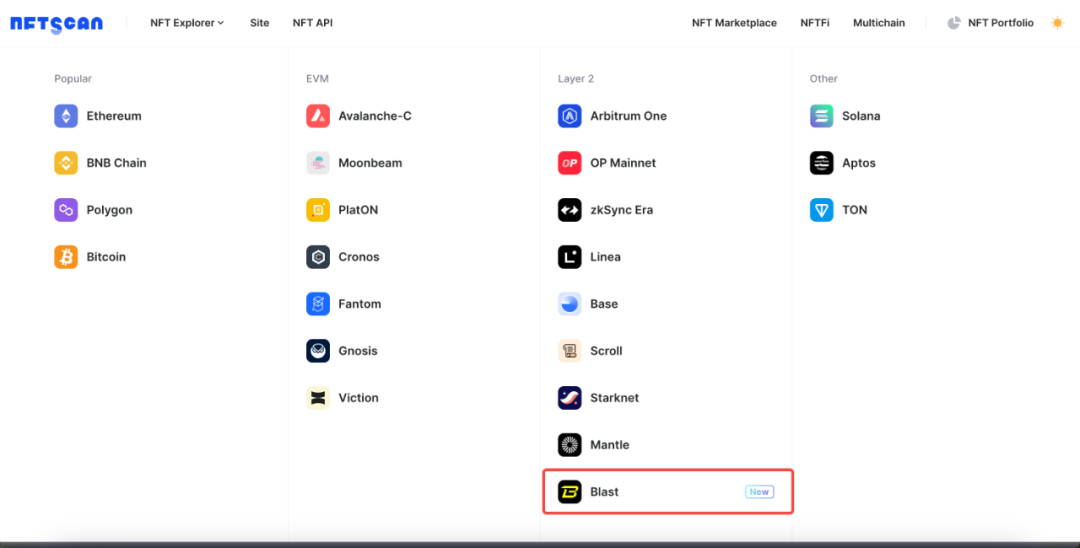 2024 年 3 月 15 号,NFTScan 团队正式对外发布了 Blast NFTScan 浏览器,将为 Blast 生态的 NFT 开发者和用户提供简洁高效的 NFT 数据搜索查询服务。NFTScan 作为全球领先的 NFT 数据基础设施服务商,Blast 是继 Bitcoin、Ethereum、BNBChain、Polygon、Solana、Arbitrum、Optimism、Aptos 等区块链之后,NFTScan 浏览器支持的第 23 条区块链网络。